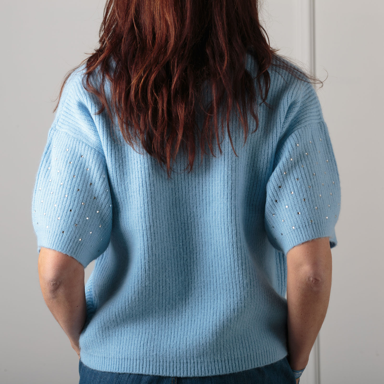 MAGLIA A SCATOLA MEZZA MANICA ,APPLICAZIONE DI PICCOLI STRASS DIAMANTINO ,GIROCOLLO,MOLTO MORBIDA PER UN CONFORT OTTIMALE DA MEZZA STAGIONE